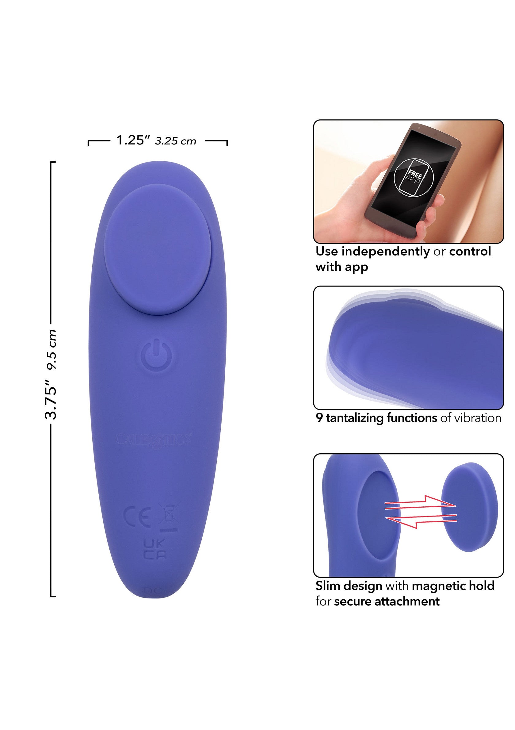Verwen jezelf met discreet genot met de CalExotics Connect Panty Teaser. Bediend via een intuïtieve app, verken 9 functies van vibratie, pulsatie en escalatie voor aanpasbare tevredenheid. Ontworpen voor solo- of gedeeld spel, zorgt het slanke ontwerp voor een veilige bevestiging met een magnetische grip. Gemaakt van lichaamsveilige siliconen, waterdicht voor veelzijdige verkenning. Een geheugenchip hervat uw laatste functie, terwijl een reisvergrendeling discretie garandeert. USB-oplaadbaar, biedt 2 uur voor een volledige lading, waardoor 40 minuten op hoge snelheid of 60 minuten op een lagere instelling mogelijk is. Verhoog uw intieme momenten met de CalExotics Connect Panty Teaser voor ongeëvenaard genot.
