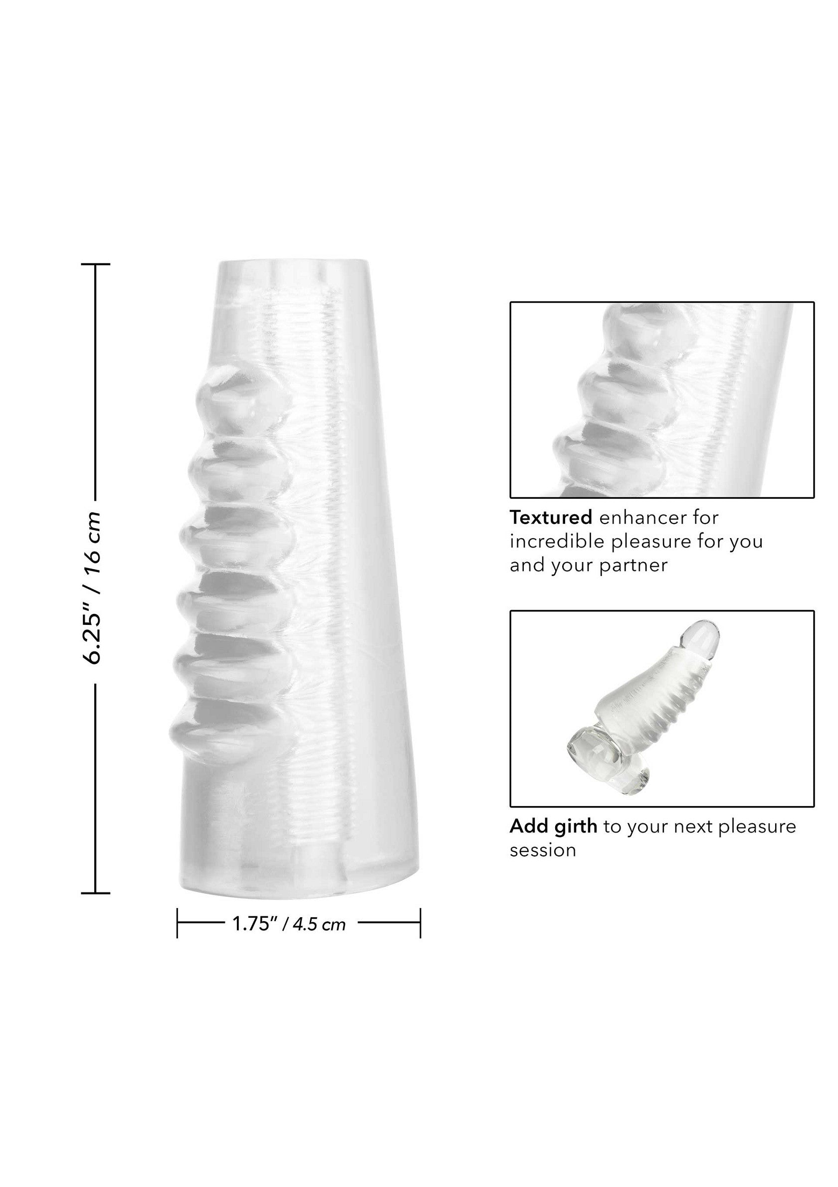 De Hot Rod Xtreme Enhancer is een penissleeve, ontworpen voor beginnende en ervaren gebruikers. De sleeve heeft een lengte van 5 cm en is gemaakt voor optimale erectieondersteuning. De Xtreme Enhancer is ontworpen met een geribbelde textuur, speciaal voor stimulatie voor hem én haar. Gemaakt van superzachte TPR en dus volledig lichaamsveilig. Wij adviseren dit product te gebruiken met een glijmiddel.