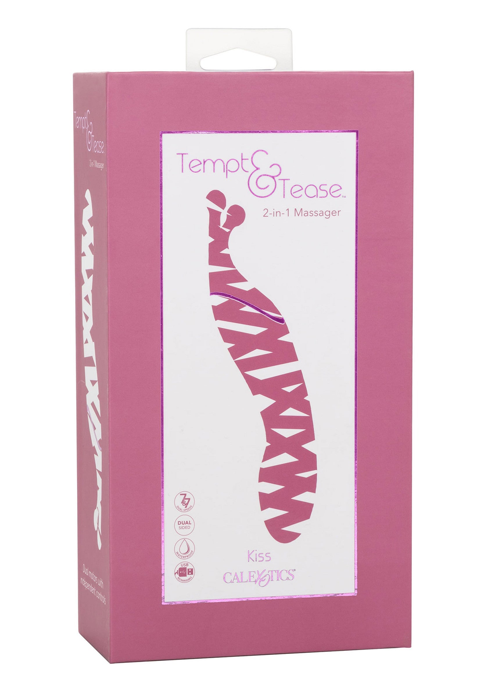 De Tempt and Tease Kiss is een dubbelzijdige stimulator die precies weet waar je naar hunkert. Voel de hitte stijgen met de dubbele stimulator met twee kenmerkende uiteinden, twee krachtige motoren en 7 onafhankelijk geregelde vibratiefuncties. Met een veelzijdige vorm en twee krachtige vibratiemotoren aan elk uiteinde, je zult in een mum van tijd nieuwe klimatologische hoogten bereiken. Kietel en plaag extern met de flikkerende teasers met zachte kralentip, of duik diep in rommelende interne stimulatie met de gebogen G-kant. Kies je stijl van plezier met twee onafhankelijk bestuurde motoren aan elk uiteinde van deze dubbelzijdige stimulator en je zult nooit moe worden van deze sexy stimulator.